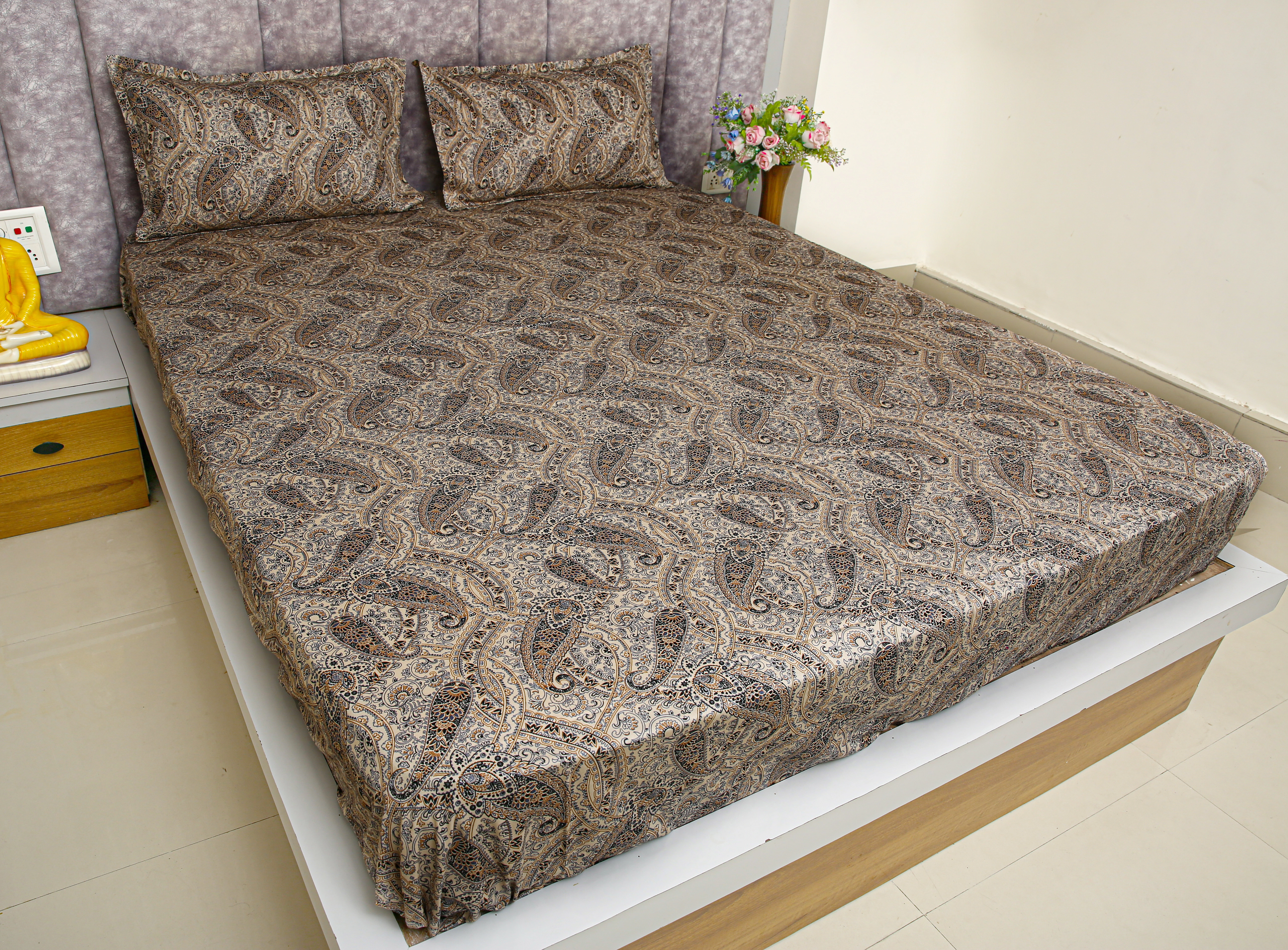 Gracious Queen Size Pure Cotton Bedsheet - Elegant Rose Garden Design | Luxury Floral Bedding